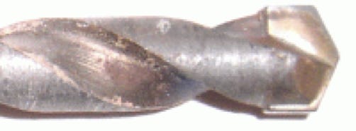 Zum Bohren in Beton benutzt man Bohrer, bei denen an der Spitze je Schneide ein Plättchen aus Hartmetall (Markenname: Widia)