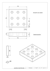 Diese Werkaufgaben sind gut geeignet, die theoretischen Kenntnisse aus dem interaktiven Bohrmaschinen-Führerschein-Lehrgang in der Praxis anzuwenden. Da von jedem Schüler nur 9 Bohrungen auszuführen sind, reicht zur Not eine verfügbare Ständerbohrmaschine für eine Werkgruppe aus. Dabei sollten von jedem Schüler aus Übungsgründen alle Bohrer selbst ein- und ausgespannt werden.