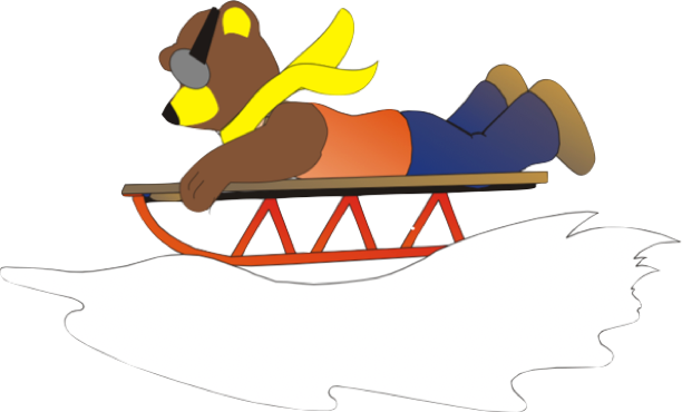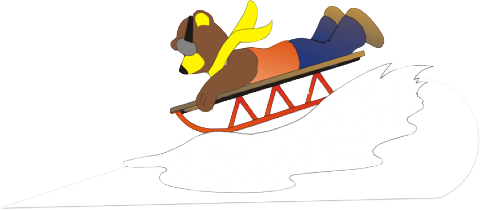Auf dem Schlitten rodeln Lina und Mama den Berg hinunter.